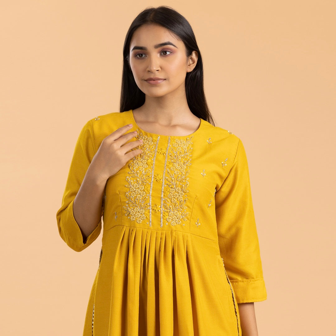 - What you wear to work, says a lot about you – you want to project an image that is strong, without having to compromise on the feminine elegance that defines the Indian woman. Welcome to the world of Indian office wear for ladies, which are designed to exude a sense of confidence, without you having to put in much effort. The colours, the fabrics and the work done on these suits have been chosen with a lot of care and consideration. Every time, you step out in these outfits, you can expect complete comfort and that boss-like confidence!