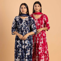 For most people, the idea of the ethnic suits for women is basic – there is a kurta, a matching salwar and there is a dupatta. However, when you come to Raj Ratan and check out our collections, you will see incredible options. You will see ethnic wear that has been created with a lot of thought and concern. Every design has been picked as an ode to the modern woman of fashion. There is a plethora of ethnic suits for women online and in store, in terms of colours, prints, patterns, and even material – there is something for everyone, every occasion and every weather.